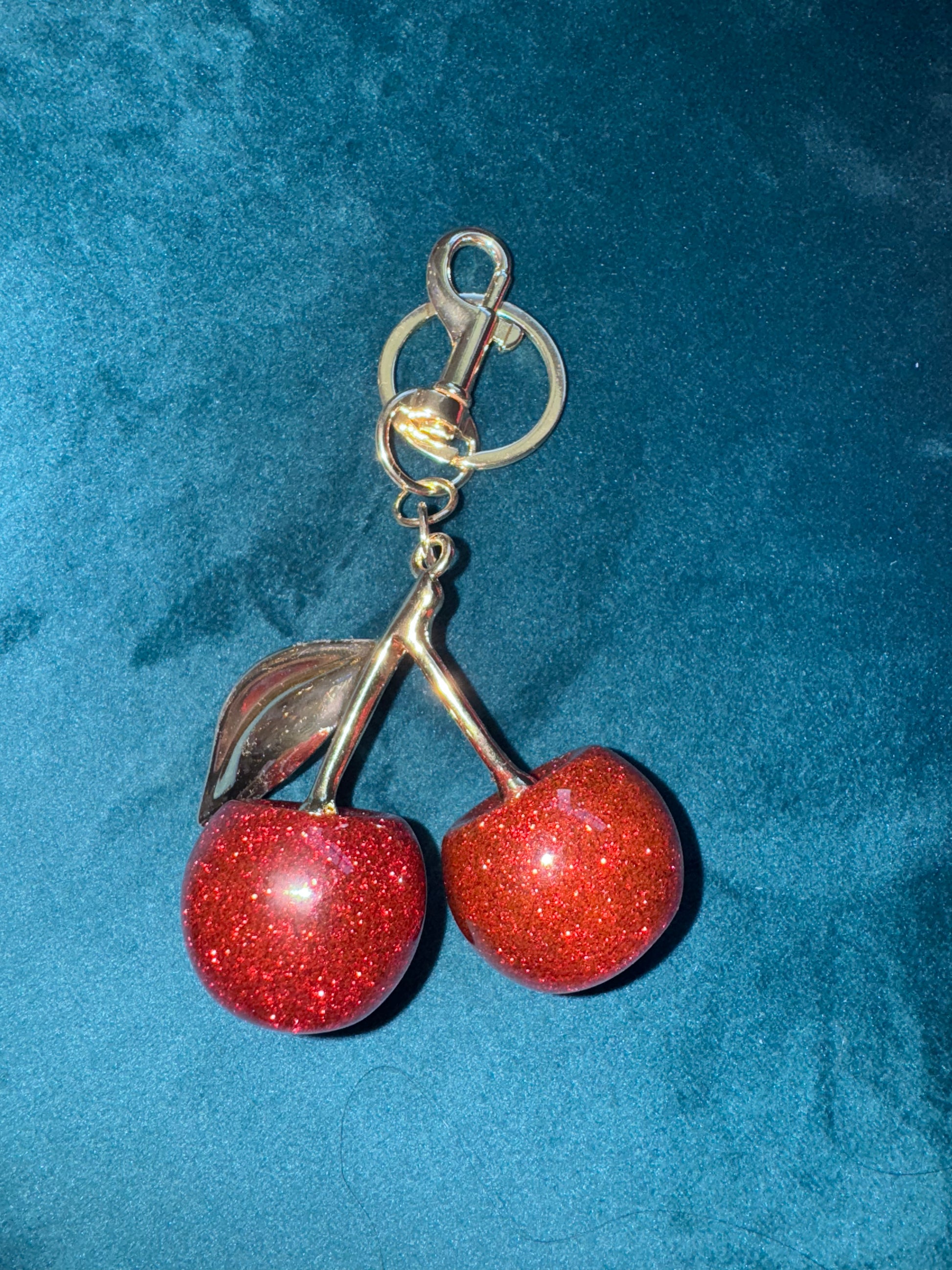 The Cherry Bag Charm is expertly crafted with a high quality design, featuring a double cherry design. Add a touch of sophistication to your bag with this elegant accessory.